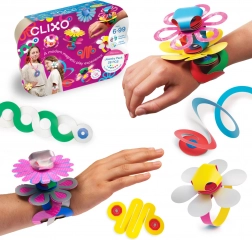 CLIXO Jewelry is een glinsterende themaset geïnspireerd op origami, die met behulp van sterke magneten verschillende vormen verbindt tot originele sieraden en accessoires. Lange strookonderdelen en speciaal ontworpen bloemelementen maken het mogelijk om spiralen, hangers en opvallende haarversieringen te creëren. De onderdelen zijn waterbestendig, licht en veilig – vrij van BPA en ftalaten.