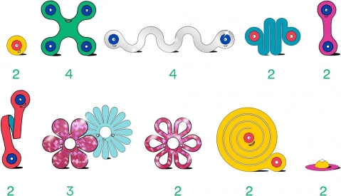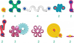- 28 onderdelen, 10 kleuren + 1 transparant element met glitters
