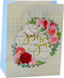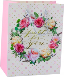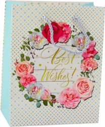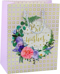 Cadeautas met een romantisch bloemenpatroon en goudkleurige tekst "Best Wishes" voor bijzondere gelegenheden.