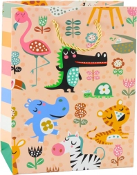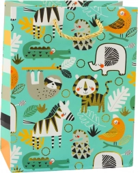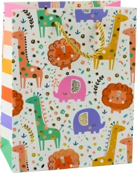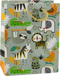 Deze papieren cadeautas met safari-dierenmotieven voegt charme toe aan je cadeaus. Elke tas heeft een stevige en kleurrijke afwerking die iedereen aanspreekt. Solide handvatten bieden comfortabel draaggemak, terwijl de aantrekkelijke patronen vol vrolijke dieren zowel kinderen als volwassenen zullen bevallen.