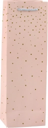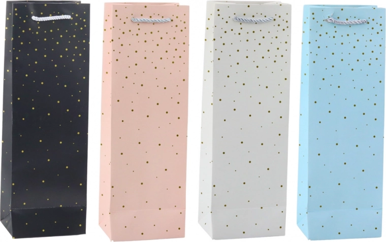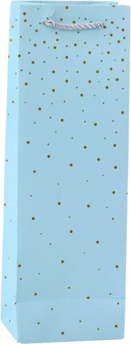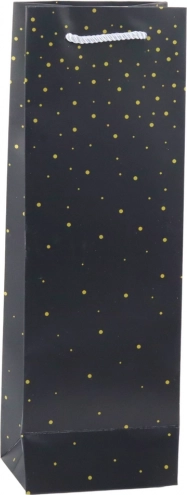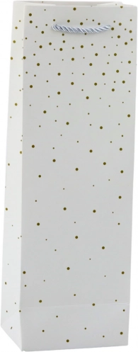 De elegante papieren cadeautas voor een fles is de perfecte manier om dranken te verpakken voor uiteenlopende gelegenheden. Gemaakt van kwaliteitspapier en gekenmerkt door een subtiel patroon van gouden stippen dat elegantie en stijl toevoegt.
