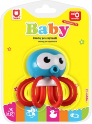 De vrolijke rammelaar en bijtring in de vorm van een octopus maakt de allerkleinsten blij. Dankzij de verschillende texturen en kleuren ondersteunt het de ontwikkeling van de fijne motoriek, visuele waarneming en biedt het verlichting bij doorkomende tandjes.