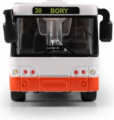 Ontdek een realistisch model van een gelede stadsbus in een aantrekkelijke rode kleur. De metalen uitvoering biedt hogere duurzaamheid en een lange levensduur, terwijl de pull-back functie het spel dynamiek geeft. Dankzij het scharnier in het midden oogt het model authentiek en neemt het moeiteloos bochten op de kinderspeelweg.