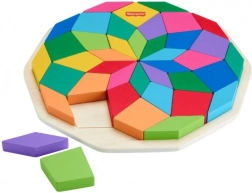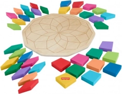 De houten puzzel Mandala van Fisher-Price is het ideale speelgoed voor kinderen die willen leren problemen oplossen en fijne motoriek ontwikkelen. Het bestaat uit 40 kleurrijke stukken die naar wens kunnen worden samengesteld of gesorteerd op een speciale ondergrond met gleuven, die helpen het geometrische mandalapatroon te vormen. Deze kleurrijke puzzel helpt ook bij de ontwikkeling van concentratie en oog-hand coördinatie.