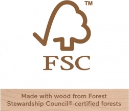 Als teken van duurzame productie draagt het speelgoed het FSC-certificaat, dat verantwoord gebruik van bosgrondstoffen bevestigt.