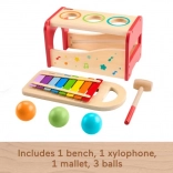 Fisher-Price Houten multifunctioneel speelgoed biedt twee speelgoedjes in één: een bankje om op de xylofoon te spelen en een losse xylofoon om apart mee te spelen. Kinderen kunnen met balletjes slaan of duwen om de toetsen van de xylofoon te raken, of de xylofoon uitnemen om er afzonderlijk op te spelen.