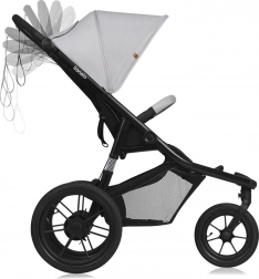 De universele sportieve kinderwagen LIONELO Azura Grey Stone combineert comfort en prestaties voor in de stad en offroad. Dankzij 3 grote met lucht gevulde wielen, comfortabele vering voor en achter en een XXL-kap met UPF50+ biedt hij een soepele rit en veiligheid voor je kind. Praktische functies zoals een dubbel vouwsysteem, een zwenkbaar voorwiel 360° met vergrendeling en een ruime mand met reflecterende elementen maken het dagelijks gebruik eenvoudig.