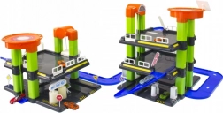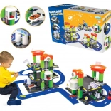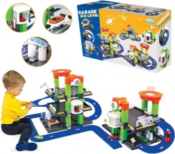 Driedelige Mega Garage Mochtoys is een geweldige speelgoedset voor kinderen, met een moderne structuur met twee verbonden garages en een rijke uitrusting voor uren speelplezier.