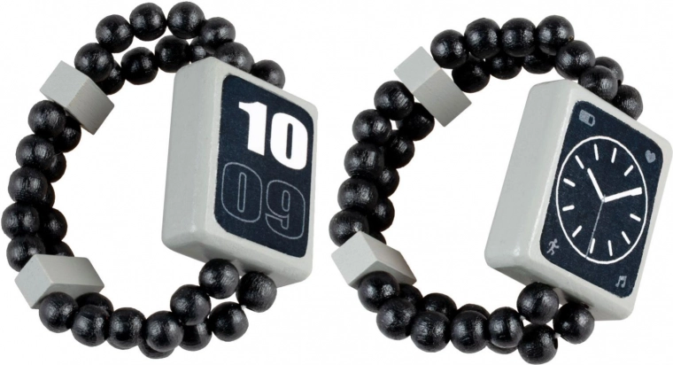 Bied kinderen creatieve spelletjes en onopvallend leren klokkijken met houten, dubbelzijdige horloges. De ene kant toont de digitale tijd, de andere een analoge wijzerplaat met wijzers – ideaal voor de eerste tijdsoriëntatie. De lichte houten constructie en de elastische kralenband garanderen comfortabel dragen en eenvoudig omdoen zonder sluiting.