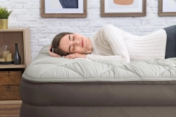 De ingebouwde pomp blaast het matras in en laat het leeglopen in ongeveer 5 minuten. Geen handmatig werk of extra accessoires meer nodig.