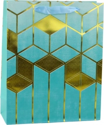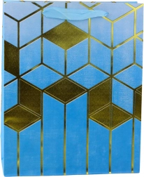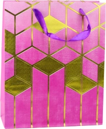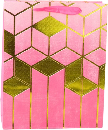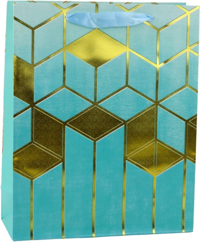 Deze elegante cadeautas combineert een modern design met functionaliteit. Hij is versierd met opvallende gouden geometrische motieven en rijke kleuren, waardoor het een representatieve verpakking is voor elk cadeau. Het stevige decoratieve karton en de duurzame koordgrepen zorgen voor comfortabel en veilig dragen.