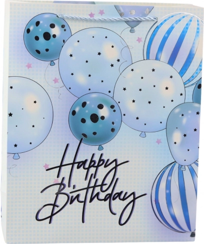 Het ballonnenmotief met de tekst Happy Birthday creëert een feestelijke sfeer en benadrukt de bijzonderheid van het cadeau.