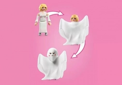 Overdag een prinses, ’s nachts een mysterieuze kasteelgeest – deze speelse PLAYMOBIL Princess Magic-set geeft elk kinderverhaal een vonk fantasie. De afneembare kapmantel en mantel onthullen de koninklijke identiteit, terwijl het oplichtende kostuum kamers en gangen laat stralen.