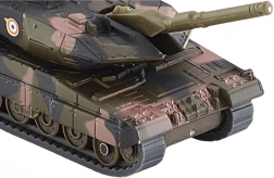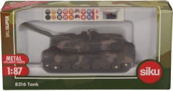 Een natuurgetrouwe replica van een gevechtstank in schaal 1:87 van het merk SIKU die zowel kleine als grote techniekliefhebbers zal bekoren. Biedt realistische details, metalen en kunststof uitvoering, een bewegende koepel en loop en soepel lopende rupsbanden. Inclusief mini soldatenfiguur en stickers voor individuele aanpassing. Geschikt vanaf 3 jaar.