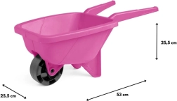 De lichte en duurzame roze kinderkruiwagen is ideaal voor de tuin, zandbak en het strand. Hij heeft compacte afmetingen van 53 cm, geprofileerde handgrepen voor eenvoudig sturen en is gemaakt van veilig, duurzaam plastic dat geschikt is voor verschillende weersomstandigheden.