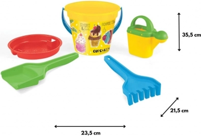 Ontdek zomers speelplezier met de IML-zandset met 5 delen. Bevat een schep, hark, molen voor zand en water of een gieter en een emmer van 2 l met duurzame IML-graphics. Gemaakt in Polen van veilige en duurzame materialen, ideaal voor de ontwikkeling van creativiteit, fijne motoriek en samenwerking. Kleuren worden willekeurig verzonden.