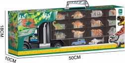 Grote kinderset van het merk Woopie combineert een vrachtwagen, een draagbare koffer en een autolanceerder in één. Biedt een 50 cm lange trekker-oplegger met 24 opbergvakken en doorzichtige deurtjes die dinosaurussen, dieren en voertuigen veilig op hun plaats houden. Ideaal speelgoed voor kinderen vanaf 3 jaar voor creatief en georganiseerd spelen, thuis en onderweg.