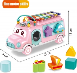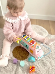 De muzikale bus van het merk WOOPIE is een multifunctioneel speelgoed dat muzikaal ontdekken en vaardigheidsontwikkeling combineert. Kinderen kunnen met het stokje tonen tikken op de kleurrijke xylofoon op het dak, ritme en gehoor trainen, terwijl de vormenstoof aan de zijkanten helpt bij het herkennen van vormen en kleuren en de concentratie versterkt.