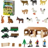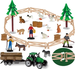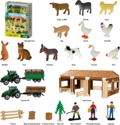 - 12 dierenfiguren, 3 mensenfiguren, 2 tractoren met afneembare aanhangers, schuur/zagroda, hekken en andere boerderijaccessoires