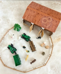 - Interactief spelen: afneembare aanhangers, openende elementen en het bouwen van omheiningen.