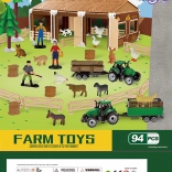 - 94 delen voor uren speelplezier: dieren, mensen, tractoren, aanhangers, schuur, hekken en accessoires.