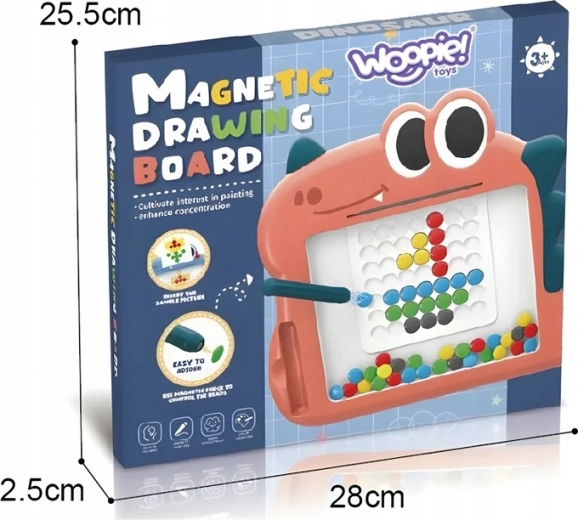 Het magnetische bord MagPad Dino is het perfecte hulpmiddel voor alle creatieve kinderen die hun vaardigheden en verbeeldingskracht willen ontwikkelen. Met de magnetische stylus en kleurrijke magnetische knopjes kunnen kinderen eenvoudig hun eigen originele patronen maken. De knopjes zijn in diverse kleuren, wat de kleurtherkenning en de manuele vaardigheden bevordert. Dankzij de eenvoudige bediening is dit bord geschikt voor de allerkleinsten vanaf 3 jaar.