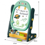 - Eén zijde is bedoeld voor tekenen met krijt, de andere voor whiteboardstiften.