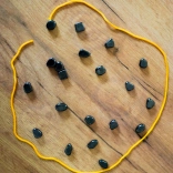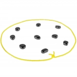 - Inhoud: 20 magnetische steentjes in diverse vormen, gele koord om het speelveld af te bakenen, stoffen zakje, handleiding