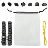 - 20 magnetische steentjes in diverse vormen, gele koord, stoffen zakje, handleiding