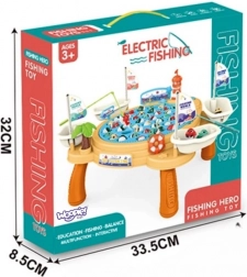 De interactieve visserstafel "Piratenschip" van Woopie is ideaal voor kinderen vanaf 3 jaar. Dit leuke en educatieve product ondersteunt de ontwikkeling van fijne motoriek, geduld en sociale vaardigheden. Kinderen kunnen genieten van geluidseffecten en de dynamische rotatie van de tafel, die de aantrekkingskracht van het spel vergroot. De tafel is ontworpen voor spel met maximaal vier spelers, elk met een eigen hengel en piratenschip om de gevangen vissen te bewaren.
