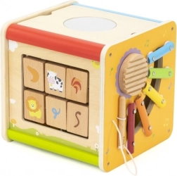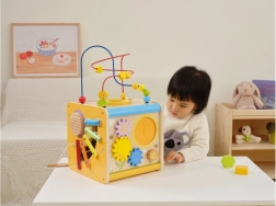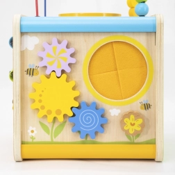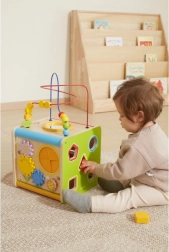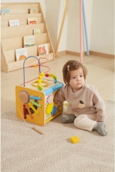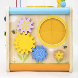Deze multifunctionele kubus biedt kinderen rijke sensorische en motorische stimulatie in een compact ontwerp. Elke zijde biedt een andere activiteit die vaardigheden spelenderwijs ontwikkelt – van het herkennen van vormen en kleuren tot ritme en geluiden en zelfs de eerste kennismaking met tijd.