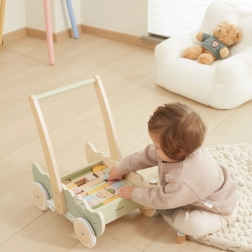Leer zelfverzekerd lopen en heb plezier daarbij. De wagen dient ook als rijdende opbergruimte voor speelgoed.