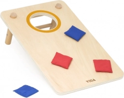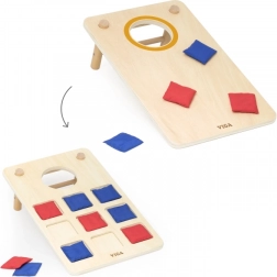 Het leuke houten 2-in-1 werpspel van VIGA combineert klassieke cornhole met boter-kaas-en-eieren. Dankzij de stevige houten uitvoering, de schuine poten en de stoffen zakjes in rood en blauw biedt het familieplezier, ontwikkelt het de hand-oogcoördinatie, traint het de nauwkeurigheid van de worp en stimuleert het strategisch denken bij het spelen van boter-kaas-en-eieren.