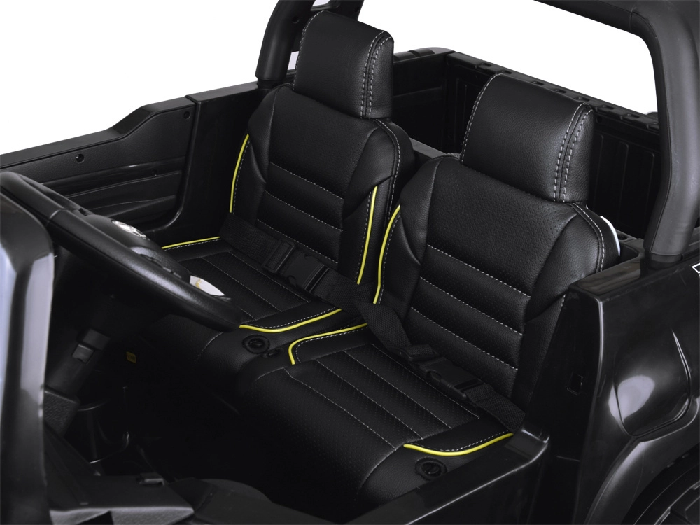 De gelicentieerde Toyota Hilux kinderpick-up voor 2 personen biedt een echte rijervaring dankzij de 4x4-aandrijving, 4 motoren van 12 V 45 W, een dubbele accu van 12 V 10 Ah en een 2,4 GHz afstandsbediening voor ouders. Zachte EVA-wielen, een tweezits lederen stoel, LED-verlichting en een multimediapaneel met Bluetooth/USB/MP3 zorgen voor comfort en plezier. Maximaal draagvermogen tot 50 kg.