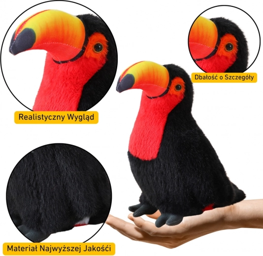 Pluche toekan met een hoogte van 20 cm, natuurgetrouw met karakteristieke zwarte veren en rode accenten. Gemaakt van zacht en aangenaam materiaal.