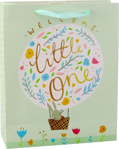 De cadeautas Welcome Little One is gemaakt van hoogwaardig decoratief karton, wat duurzaamheid en een esthetische uitstraling garandeert. Satijnen handvatten in mintkleur voegen elegantie en draagcomfort toe. De tas met afmetingen 32 x 26 x 12 cm is ideaal voor het verpakken van kleine tot middelgrote geschenken, zoals kleding, speelgoed of babyverzorgingsproducten.