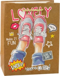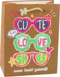 De tas kenmerkt zich door vier verschillende motieven, elk betoverend met levendige kleuren en positieve slogans die het jeugdige en optimistische karakter benadrukken. Sterke koordhandvatten zorgen voor comfortabel dragen en zijn kleurmatig afgestemd op het ontwerp. De tas met afmetingen 23 x 18 x 10,5 cm is ideaal voor het verpakken van middelgrote en kleinere cadeaus, zoals cosmetica, accessoires, boeken of snoep.