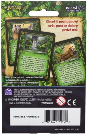 Begin niet met spelen als je het niet wilt uitspelen! Het Jumanji kaartspel trekt je mee de gevaarlijke jungle in, waar teamwork en snelle beslissingen het verschil maken tussen winst en verlies. Spelers gaan samen op missie, volbrengen taken, lossen raadsels op en houden hun levens bij met stijlvolle tent-standaardjes.