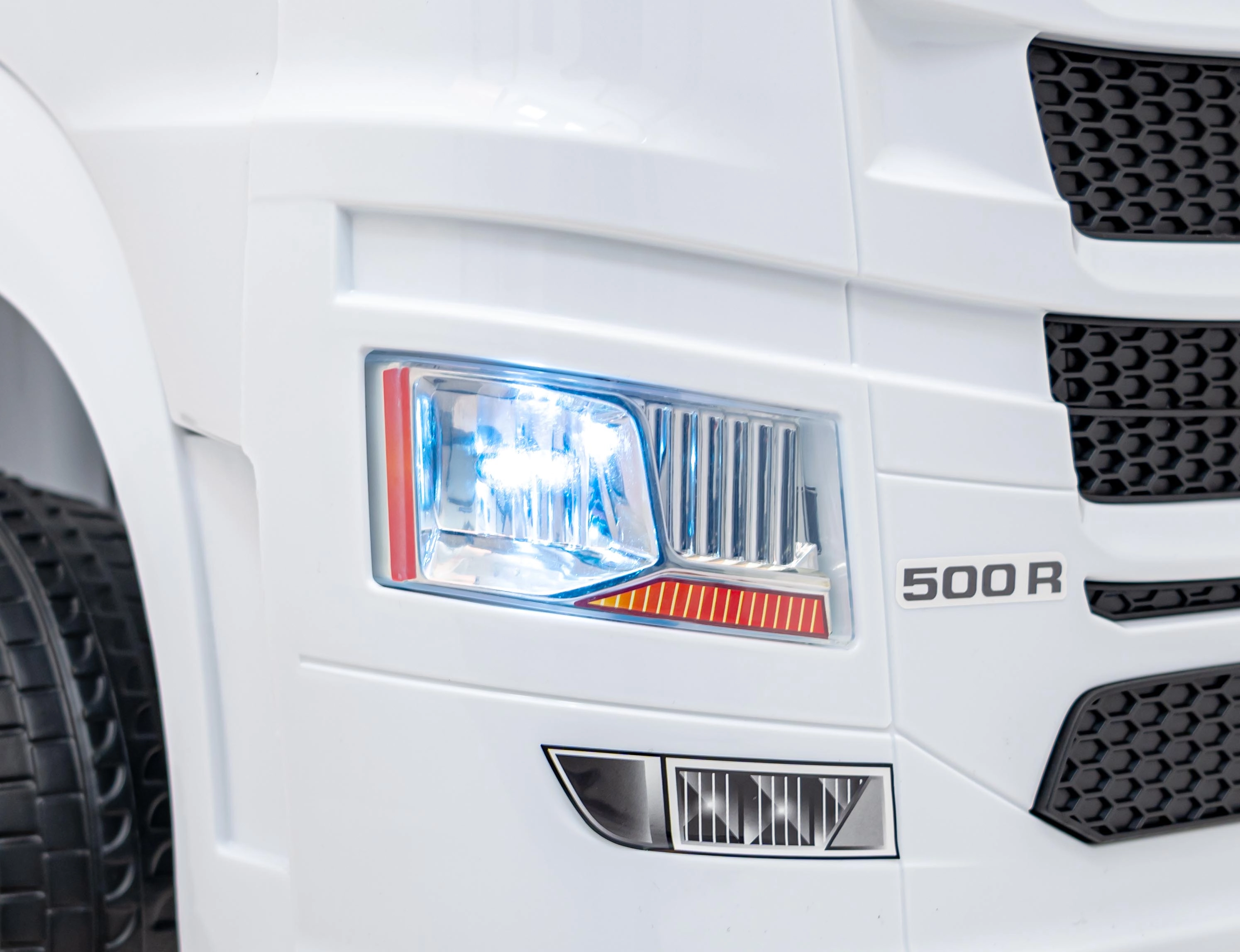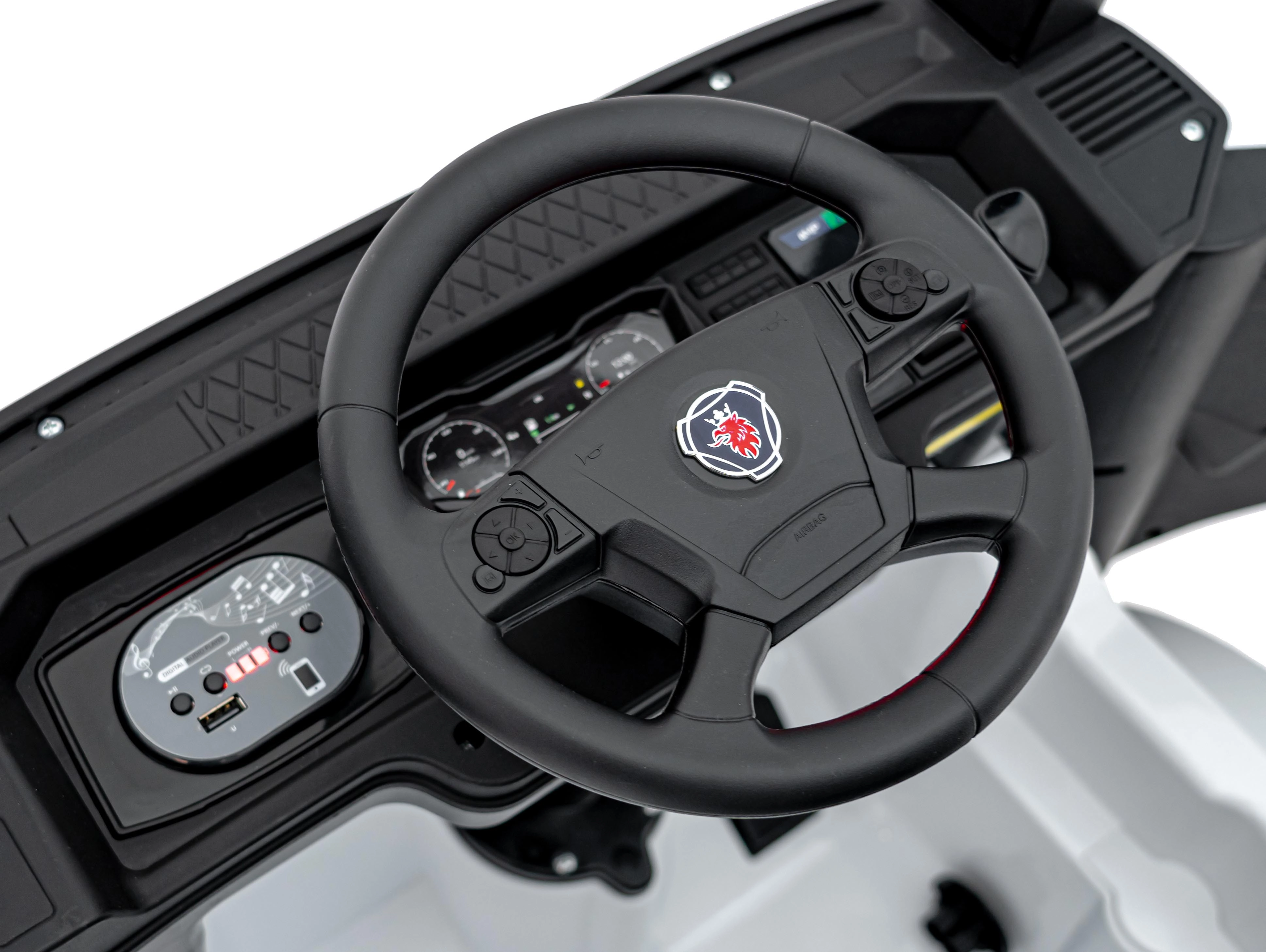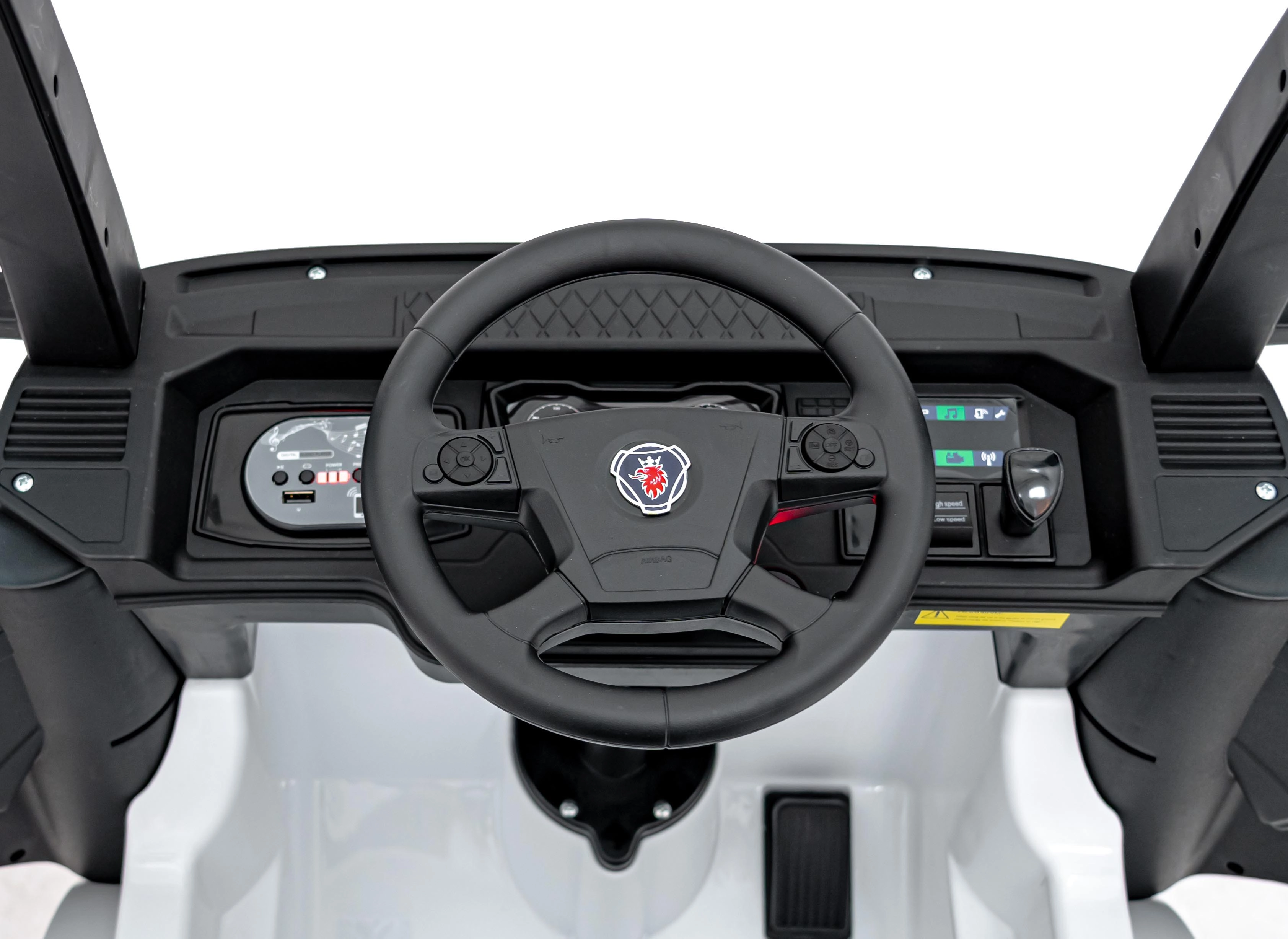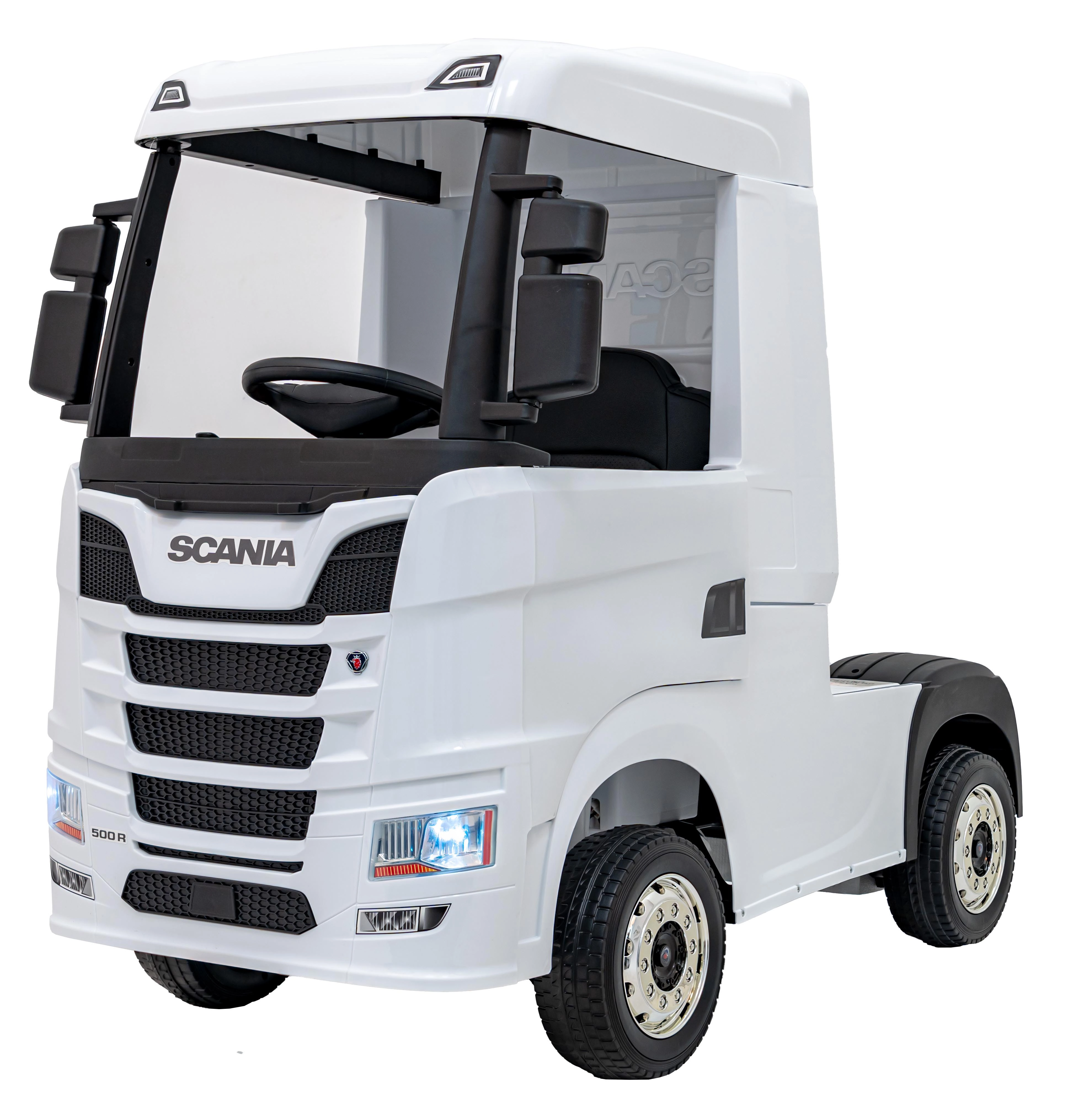 Witte kinderauto Scania R-serie is de ideale keuze voor jonge bestuurders die hun eigen rit willen beleven in een stijlvol en functioneel voertuig. Deze elektrische auto biedt veiligheid en plezier dankzij de geavanceerde functies en het ontwerp.