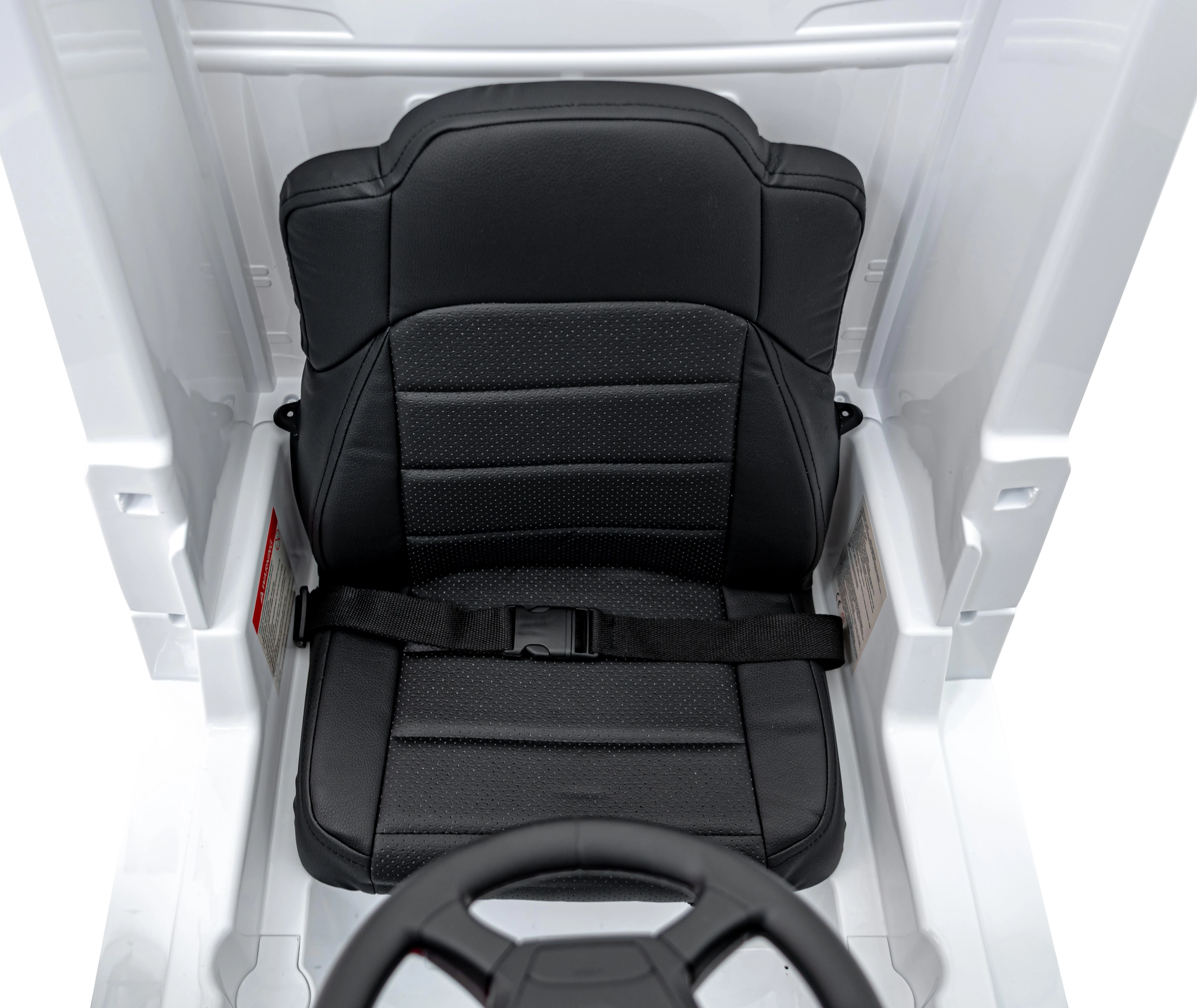 - Leren stoelen: met veiligheidsgordels en lederen bekleding