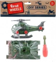 Deze schroefconstructieset maakt alle nieuwsgierige jongens en meisjes blij die graag dingen in elkaar zetten en uit elkaar halen. In de set vind je een gedetailleerde tank en helikopter die het kind eenvoudig kan monteren met de meegeleverde schroevendraaier. Het speelgoed is gemaakt van licht en duurzaam plastic voor comfortabel en veilig spelen.