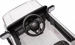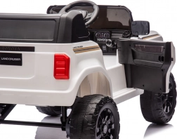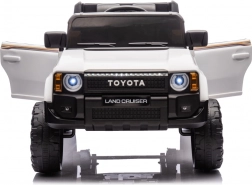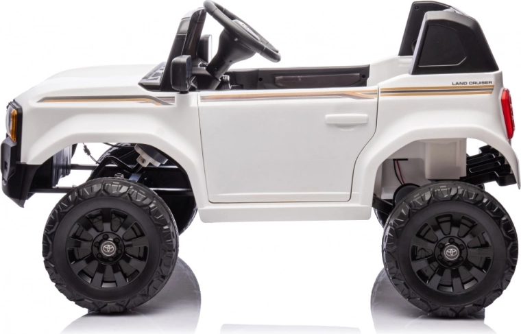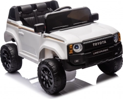 De stijlvolle elektrische kinderauto TOYOTA LAND CRUISER PRADO in het wit biedt kinderen een realistische rijervaring. Voorzien van een 12V/7Ah accu, dubbele motoren voor soepel wegrijden, EVA schuimbanden voor comfortabel rijden, LED-verlichting en een modern audiopaneel met MP3, USB en Bluetooth. Voor de veiligheid zorgen veiligheidsgordels, openende deuren en een 2,4 GHz afstandsbediening met Stop-functie.
