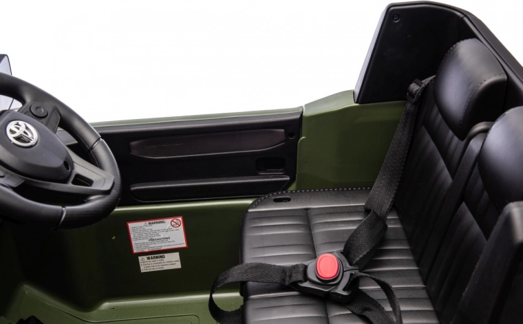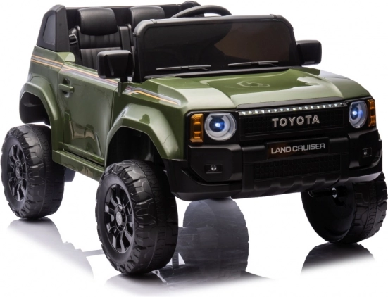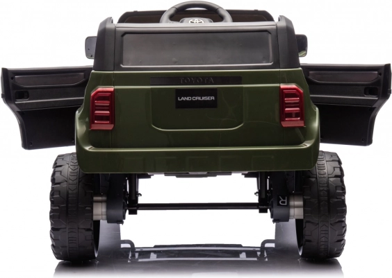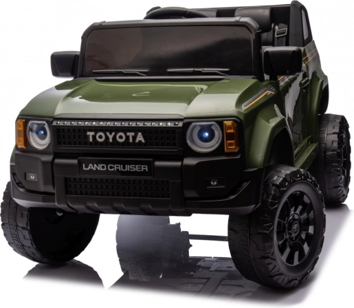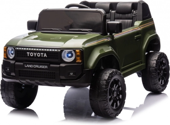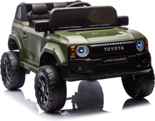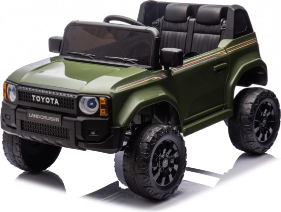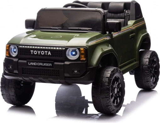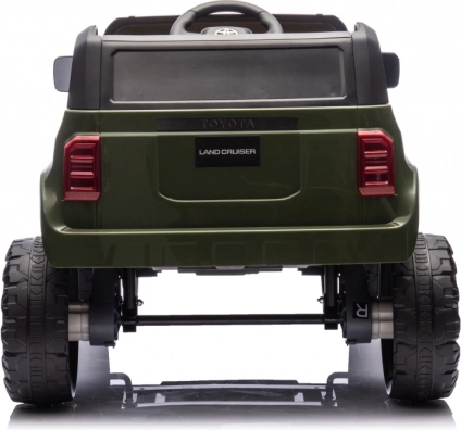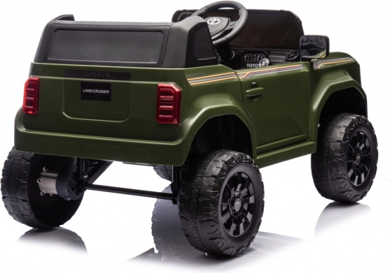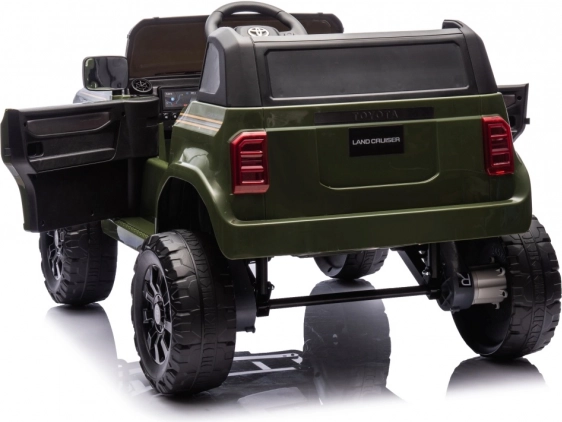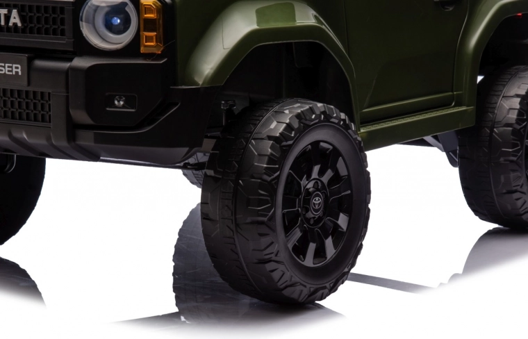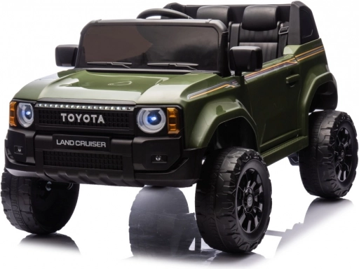 Stijlvolle kinderauto TOYOTA LAND CRUISER PRADO in het groen biedt kinderen een realistische rijervaring. Aangedreven door twee motoren, gevoed door een 12V/7Ah accu, met soft start voor soepel wegrijden. Dankzij EVA-schuimbanden, openende deuren en LED-verlichting is de rit comfortabel en veilig. Ouders waarderen de 2,4 GHz afstandsbediening met noodknop STOP. Voor muziek zijn er MP3, Bluetooth en USB, terwijl het eco-lederen zitje met veiligheidsgordels voor comfort zorgt.