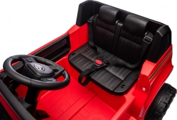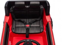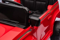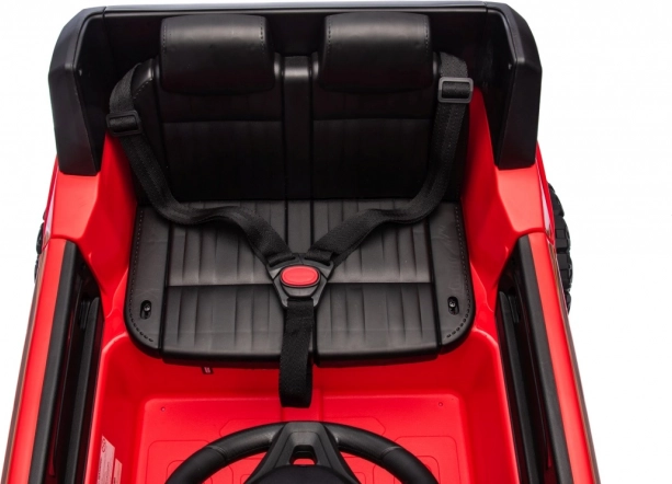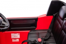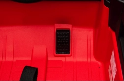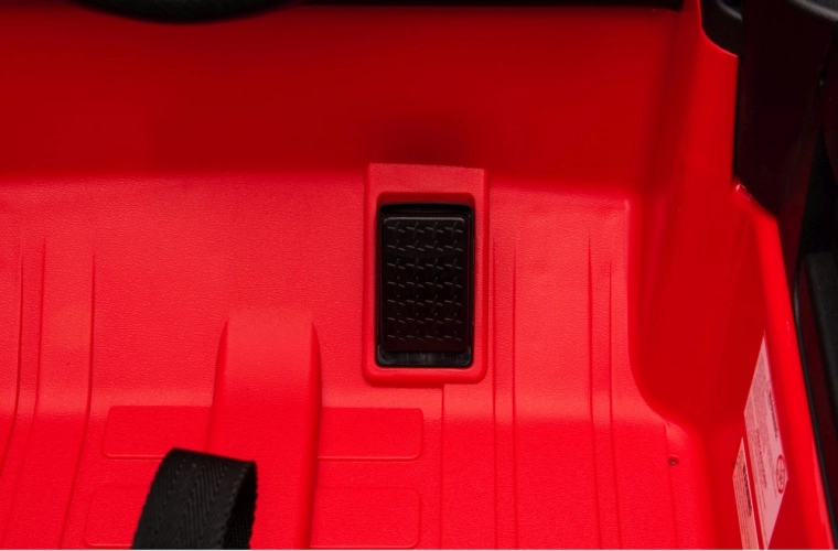 Het interieur verrast met een comfortabel zitje van eco-leer met gordels, een functioneel audiopaneel (Bluetooth, USB, MP3), voorste LED-lampen en bedieningsknoppen op het stuur (claxon, geluiden). Voor de veiligheid zorgt de 2,4 GHz afstandsbediening met drie snelheden en noodstop.