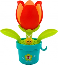 Bij het vullen van het meegeleverde gietertje en het bevochtigen van de bloem beginnen de bloembladen zich geleidelijk te openen en een sympathiek geel figuurtje te onthullen. Dit spectaculaire moment tovert zeker een glimlach op het gezicht van elk kind en stimuleert tot meer spelen. Dit speelgoed biedt niet alleen geweldig speelplezier, maar ontwikkelt ook de oog-handcoördinatie, geduld en begrip van oorzaak-en-gevolgrelaties.