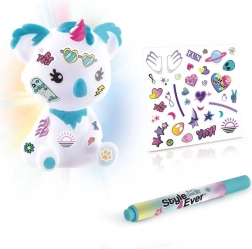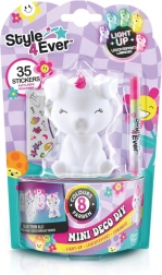 Verlicht de kamer met een originele decoratie: de lichtgevende figurine STYLE4EVER mini deco biedt zacht ambient licht in 8 kleuren en ruimte voor creatieve versiering. In de verpakking vind je stickers en een stift, en je kunt kiezen uit 6 motieven (2 eenhoorns, koala, hond, kat). Batterijen inbegrepen en het speelgoed is geschikt vanaf 6 jaar.