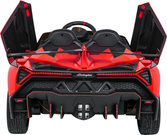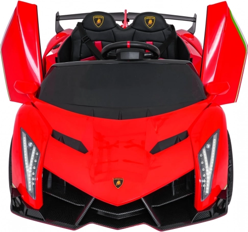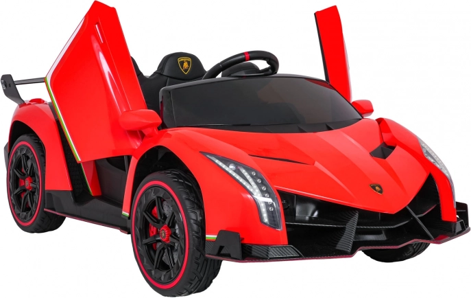 Vervul de kinderdroom om in een supercar te rijden. De elektrische auto LAMBORGHINI Veneno in helder rood combineert topprestaties met veiligheid: vier 4×45 W motoren, dubbele 12 V 7 Ah accu’s, soepele start en twee snelheden vooruit/achteruit. Robuuste EVA-banden, achtervering en 10 cm bodemvrijheid bieden comfort, ook op oneffen terrein.