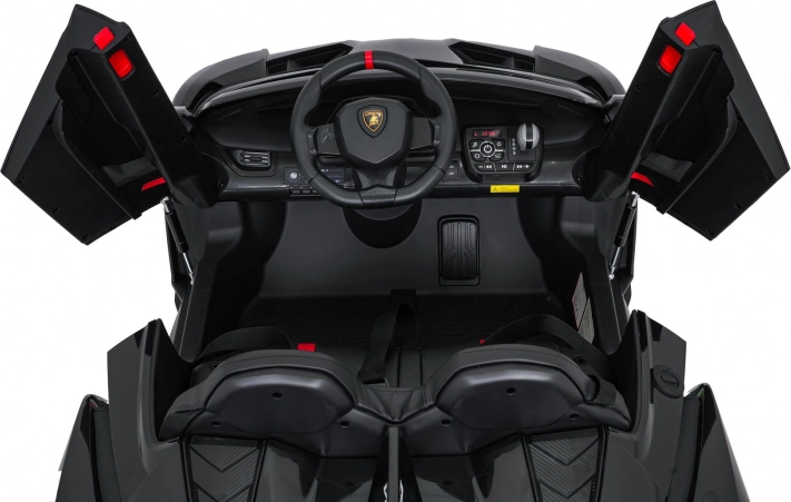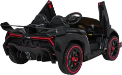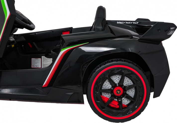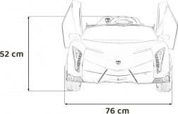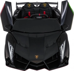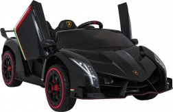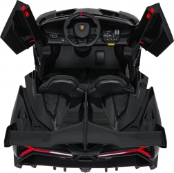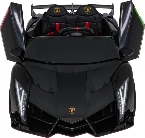 Vervul de kindersdroom van een supersportwagen: de gelicentieerde elektrische auto LAMBORGHINI Veneno in elegant zwart heeft 4×45 W motoren, een dubbele 12 V accu, opklapbare vleugeldeuren, LED-verlichting voor en achter en een comfortabel zitje van eco-leer met veiligheidsgordels. De ouderlijke 2,4 GHz afstandsbediening met Stop-knop en keuze uit 3 snelheden zorgt voor veilig plezier. Het mediapaneel biedt Bluetooth, USB, MP3 en FM-radio.