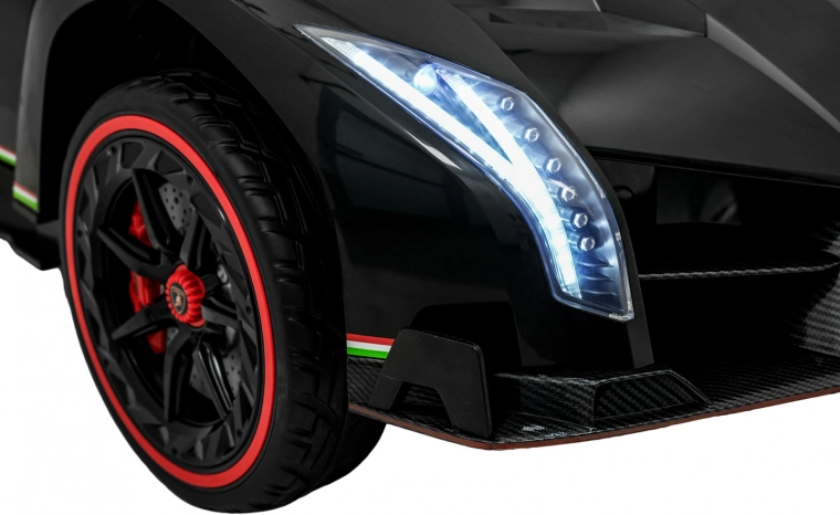 De authentieke look van de LAMBORGHINI Veneno met scissor doors, scherpe lijnen en LED-lichten zorgt voor een spectaculair effect bij elke rit – net als in een echte supersportwagen.