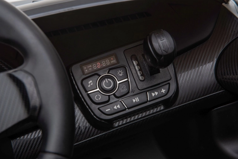 Veiligheid wordt gewaarborgd door veiligheidsgordels, hoogwaardige EVA-wielen en volledige controle voor ouders via de 2,4GHz afstandsbediening met drie snelheden en noodknop Stop. LED-verlichting voor en achter verbetert de zichtbaarheid en geeft de auto een premium uitstraling.